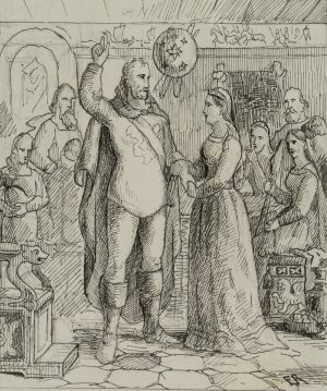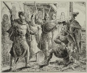 E. RONDAHL (1858-1914), Stig Andersen rächt die Ehre seiner Frau, 1875, Feder