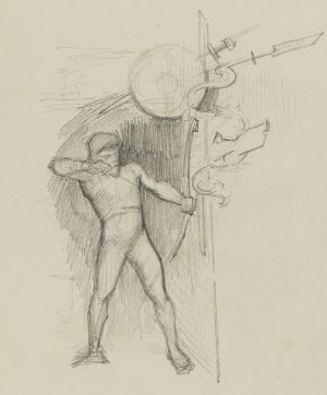 E. RONDAHL (1858-1914), Nordischer Bogenschütze, 1884, Bleistift Romantik