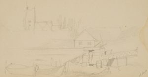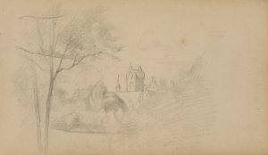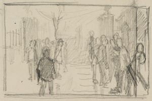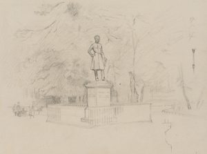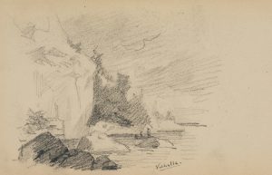 E. RONDAHL (1858-1914), Skizzenhafte Figurenszene, um 1880, Bleistift Romantik