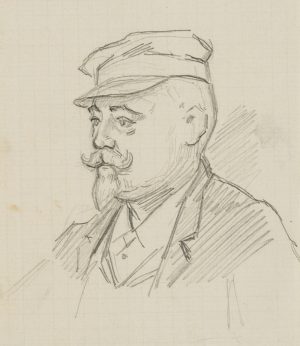 E. RONDAHL (1858-1914), Skizzenhafte Figurenstudie, Kutscher, um 1880, Bleistift