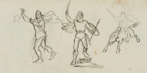 E. RONDAHL (1858-1914), Nordische Krieger und Reiter, um 1880, Bleistift
