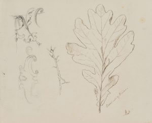 E. RONDAHL (1858-1914), Studie eines Eichenblattes, um 1880, Federzeichnung