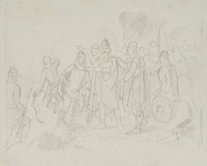 E. RONDAHL (1858-1914), Nordische Krieger, um 1880, Bleistift Romantik