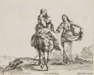 Nach BELLA (*1610), Mägde mit bepacktem Esel unterwegs, Rad. Barock Landschaft