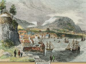Unbekannt (19.Jhd), Ansicht v. Hafen u. d. Stadt Bergen, Realismus Architektur