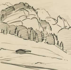 H. WAGNER (1885-1949), In der Urhütte, 1915, Realismus Architektur