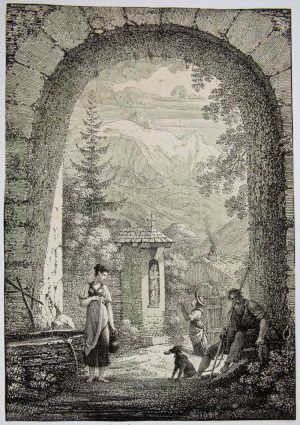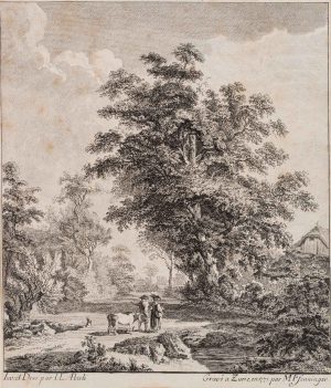 PFENNINGER (*1739) nach ABERLI (*1723), Bauernpaaar mit Kuh in Landschaft,