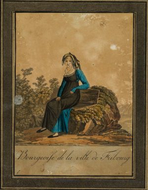 Unbekannt (19.Jhd), Eine Bürgerin aus Freiburg, Schweiz, Romantik Porträt