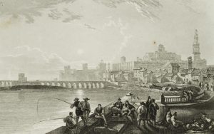 Unbekannt (19.Jhd), Cordoba: Flussansicht, Sst. Romantik Architektur