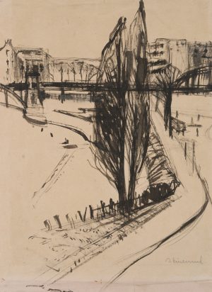 Unbekannt (20.Jhd), Blick auf eine große Stadt mit Brücken, Expressionismus Sta