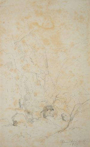 T. WEBER (1813-1875), “Johanneskofel”, Berghütte, Südtirol, 1867, Bleistift