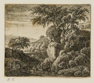 H. SWANEVELT (*1600), Flusslandschaft, 1640, Radierung Barock Landschaft