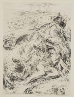 P. LEMAGNY (1905-1977), ‘Schäferstündchen’ während der Ernte, Rad. Realismus