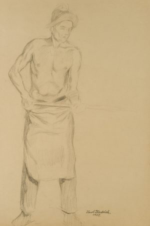 K. FRIEDRICH (20.Jhd), Porträtstudie eines Handwerkers, 1952, Bleistift