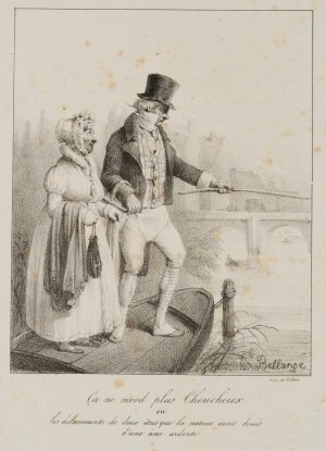 H. BELLANGÉ (1800-1866), Karikatur. Paar beim Angeln, Moderne Karikatur