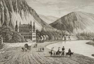 Unbekannt (19.Jhd), Flusslandschaft bei Bad Ems mit d. Karlsburg, Sst. Romantik