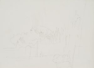 E. FÜRSTENAU (*1862), Skizze einer Parkanlage, um 1920, Bleistift Romantik