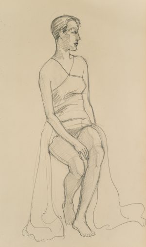 Unbekannt (20.Jhd), Modestudie, Dame im Trägerkleid, Bleistift Avantgarde