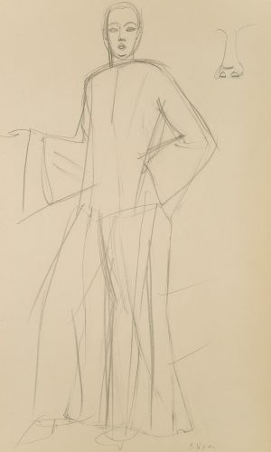 Unbekannt (20.Jhd), Modestudie, Elegantes Kostüm, 1920, Bleistift Avantgarde