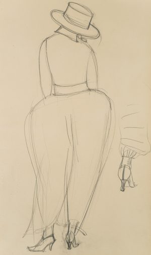 Unbekannt (20.Jhd), Modestudie, Hosenanzug in Rückenansicht, 1920, Bleistift