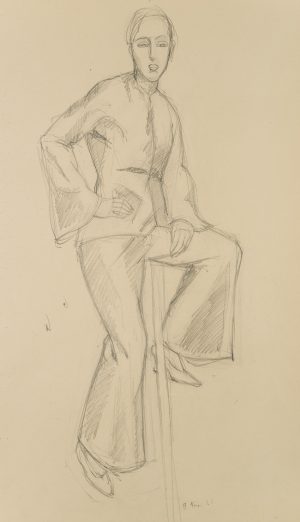 Unbekannt (20.Jhd), Modestudie, Hosenanzug, 1926, Bleistift Avantgarde Mode