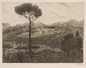 A. CAYLUS (1692-1765), Lombardische Landschaft mit vieltürmiger Stadt, Rad.