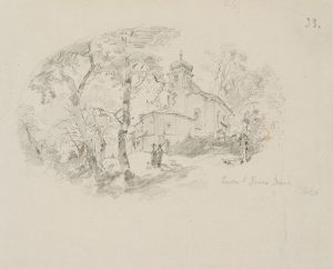R. PÜTTNER (1842-1913), PÜTTNER, Erhöht liegende Kirche mit Zwiebelturm.,