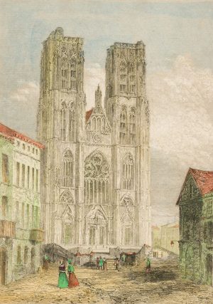 Unbekannt (19.Jhd), Blick auf Kirche St. Michel in Brüssel, Sst. Romantik