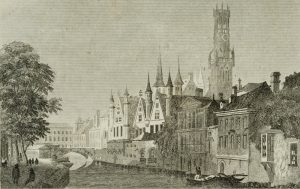 Unbekannt (19.Jhd), Blick in die Rozenhoedkaai, Brügge, Rad. Romantik Architektu