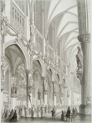 Unbekannt (19.Jhd), Blick ins Schiff d. Kathedrale zu Mechelen, Sst. Romantik