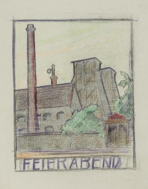 B. BURGER (1892-1968), “Feierabend”, Ansicht e. Fabrikanlage, Gegenständlich