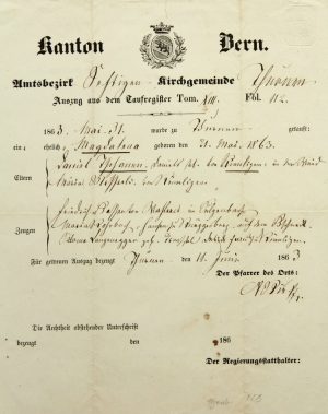 Unbekannt (19.Jhd), Auszug Taufregister Amtsbezirk Seftigen (Bern), Romantik