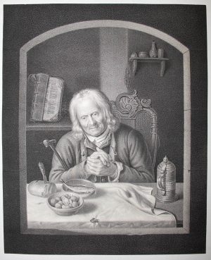 Unbekannt (19.Jhd), Mann beim Tischgebet, Genredarstellung, Romantik Berufslebe
