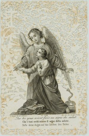 Unbekannt (19.Jhd), Votivkarte, Votivbild Engels, Stahlstich Realismus Biblische
