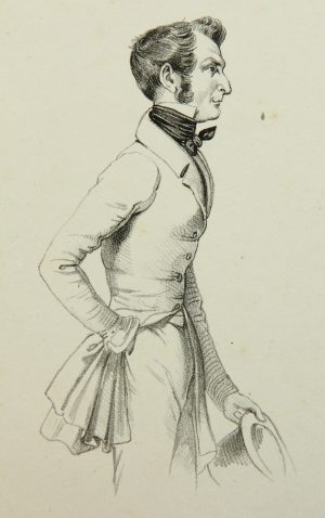 MASCARD FILS (*1833), Karikaturporträt eines Mannes, Biedermeier Karikatur