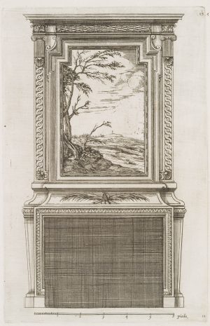 Unbekannt (18.Jhd), Kaminentwurf mit Landschaft. Vorlage 11, um 1750, Klassizis
