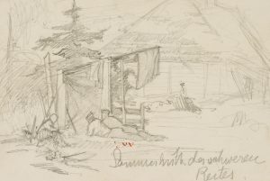 B. BURGER (1892-1968), Genreszene mit Bäuerin in Limburg, 1913, Bleistift