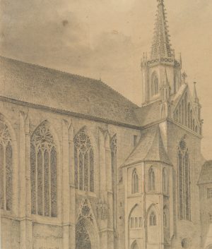 KLEINSCHMIDT (19.Jhd), Südansicht des Meissener Doms mit “Höckrigem Turm”, Bleis