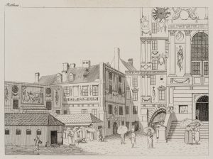 F. BOLLINGER (19.Jhd), Ansicht des Alten Rathauses, vor 1820, Rad. Romantik