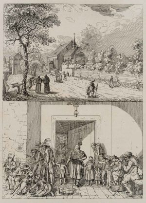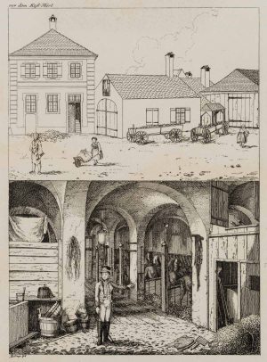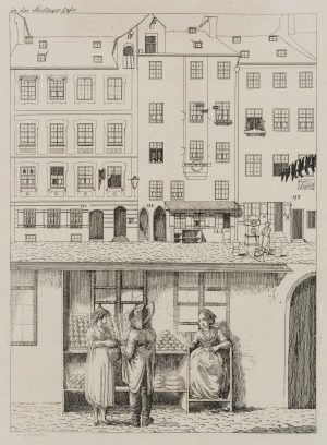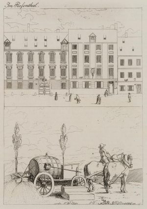 F. BOLLINGER (19.Jhd), “Vor dem Kost-Thörl”, vor 1820, Rad. Romantik Architektur
