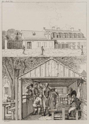 F. BOLLINGER (19.Jhd), Kegelbahn im Wirtshaus Archnoe, vor 1820, Rad. Romantik