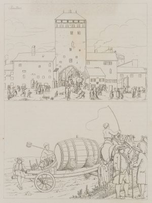 F. BOLLINGER (19.Jhd), Isartor und Bierkutscher, vor 1820, Rad. Romantik