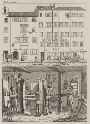 F. BOLLINGER (19.Jhd), Häuser am Färbergraben, vor 1820, Rad. Romantik