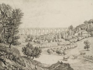 C. GRAIMBERG (*1774), Landschaft mit Aquädukt, Dorf und Bauern, um 1800,