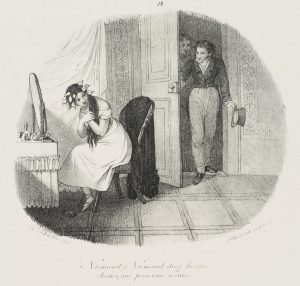 M. SCHWIND (1804-1871), Verlegene Jungfrau im Umkleidezimmer, um 1835, Romantik
