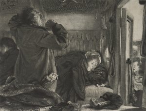 Nach MENZEL (*1815), Im Eisenbahncoupé nach durchwachter Nacht, um 1900, Rad.