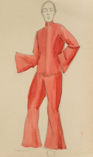 Unbekannt (20.Jhd), Modestudie, Roter Overall mit Schlag, Bleistift Experimental