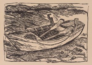 Unbekannt (20.Jhd), Kahn auf dem Wasser, Radierung Realismus Fischen