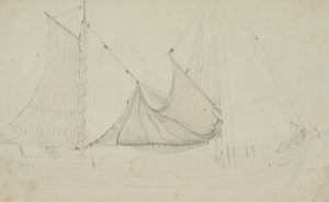 Unbekannt (19.Jhd), Skizze eines segelsetzenden Schiffes, Bleistift Realismus