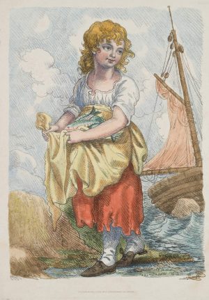 M. BROWN (19.Jhd), Fischermädchen am Meer, um 1820, Rad. Biedermeier Fischen